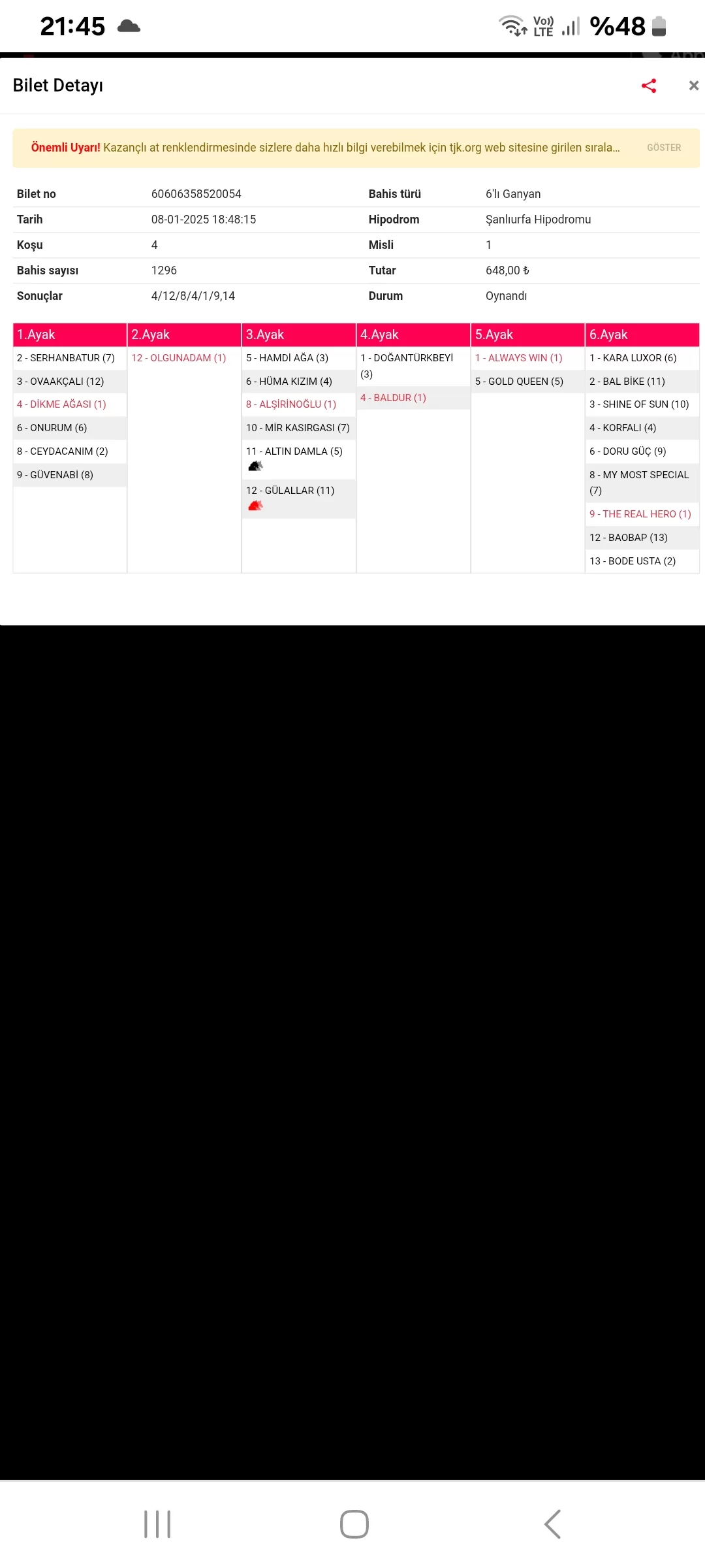 Teşekkür ederim 8 vermiş son ayak Efg geldi şansımıza nasibimiz buymuş