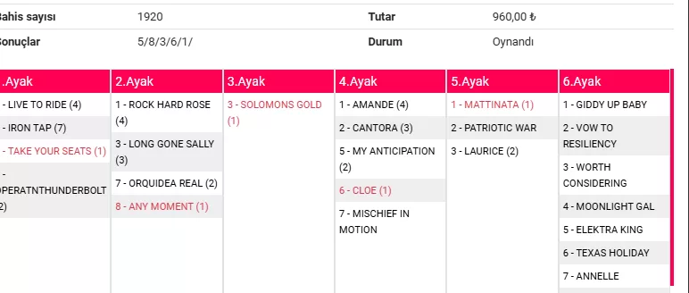 7.KOŞU : 3 SÜPERSON 5 HABBUŞE 4 BALDUR 1 DOĞANTÜRKBEYİ 2 İŞKODRALI ayıramadım