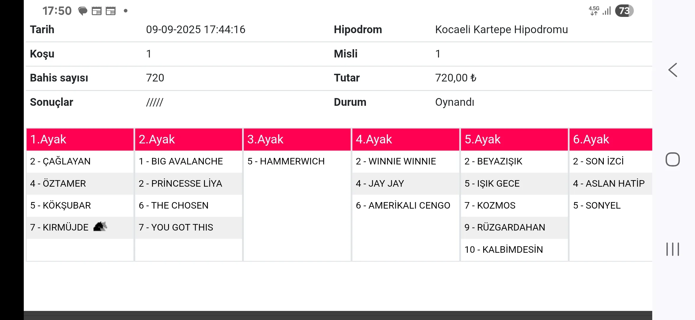 252 tl son ayak 4 numaraya ganyan attım 4’lü