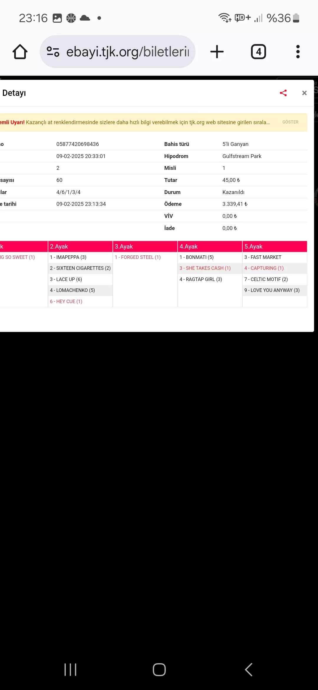 2 ayak son koşusu 3 bertafsil yol bulamadi burda çok şanslı bana göre