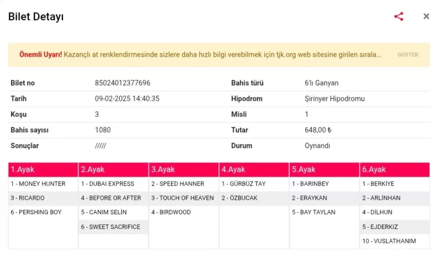 İbrahim kutluyorum, ikramiye ne olursa olsun altılı yakalamak önemli ve güzel…Tebrikler 👏👏👏