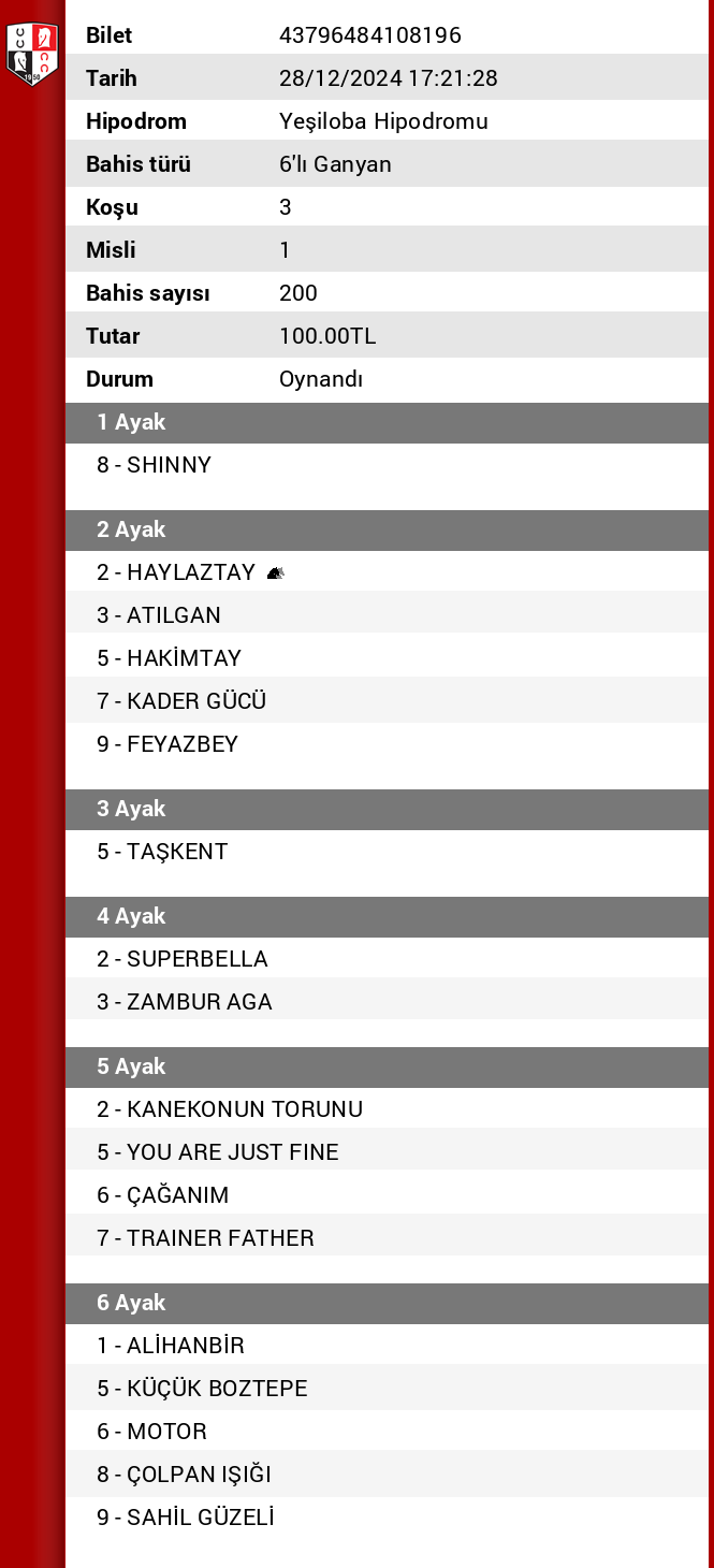 6.AYAK: Buraya sermaye kalmayınca ince eledik ve 6 – PORSUK GÜZELİ bankosu ile riskimizi aldık.