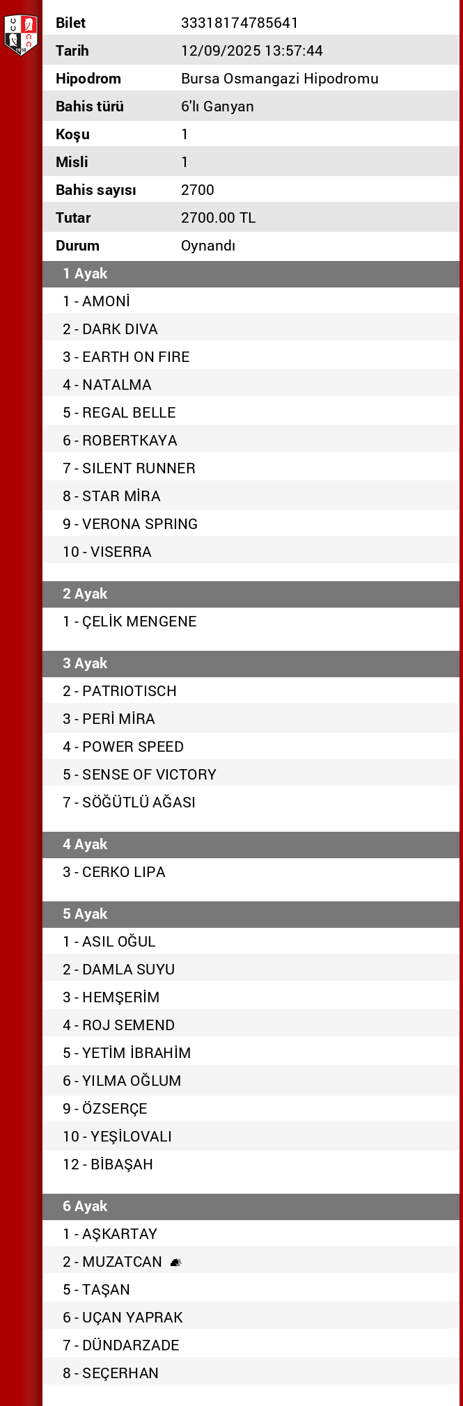 Ya şu atı ilk altılıya tek atacaktım çok geride çıkmış korktum… agf de ikinci at çıksaydı tekim olurdu kesin